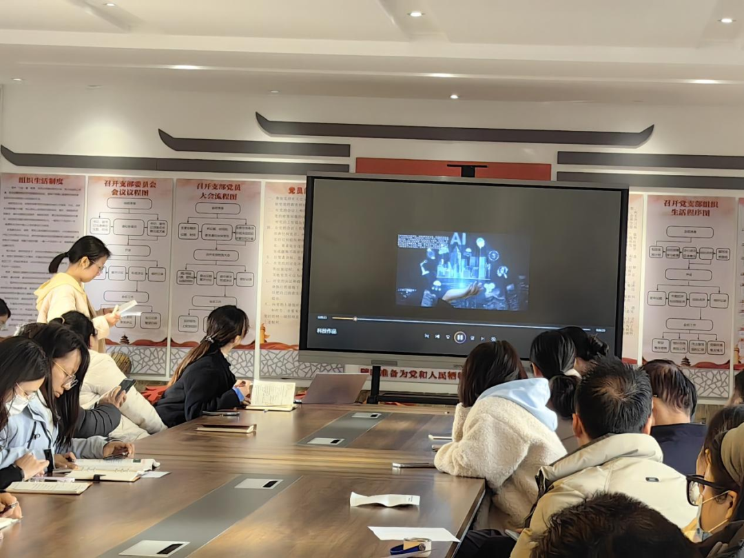 2025年11月26日下午,在昆明市官渡区职业高级中学党总支的带领下融合我校本月科技节元素,在学校党建活动室组织开展了以“党建引领科技自强,创新驱动赋能未来”为主题的十一月主题党日活动。全体党员齐聚一堂,通过庄严仪式、系统学习和专题研讨,进一步强化党性修养,筑牢纪律意识,激发创新热情。活动由施兴娜同志主持。